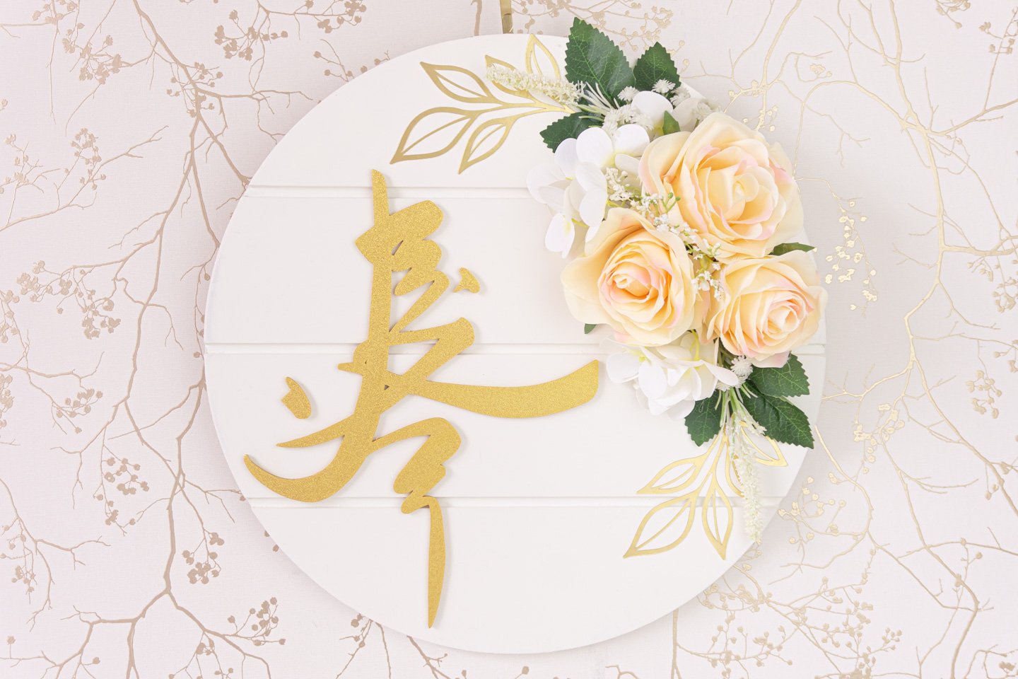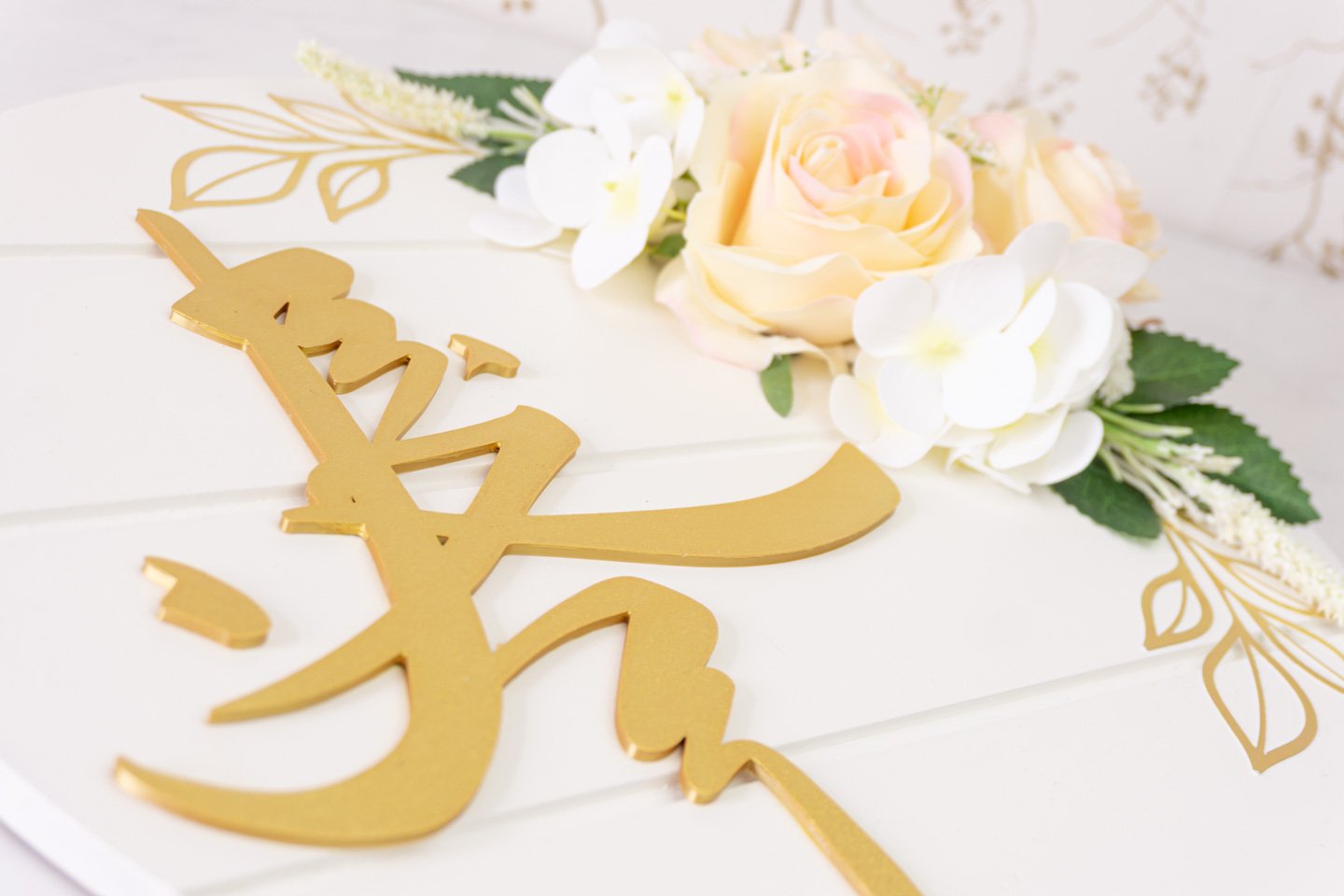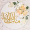 This handcrafted board blends reverence with modern styling—soft peach rose florals on a crisp white base that reads as refined and welcoming for entryways, console tables, and Ramadan or Eid setups. The round format and neutral tones make it easy to layer with lanterns and framed prints for a balanced vignette that doesn’t feel generic.